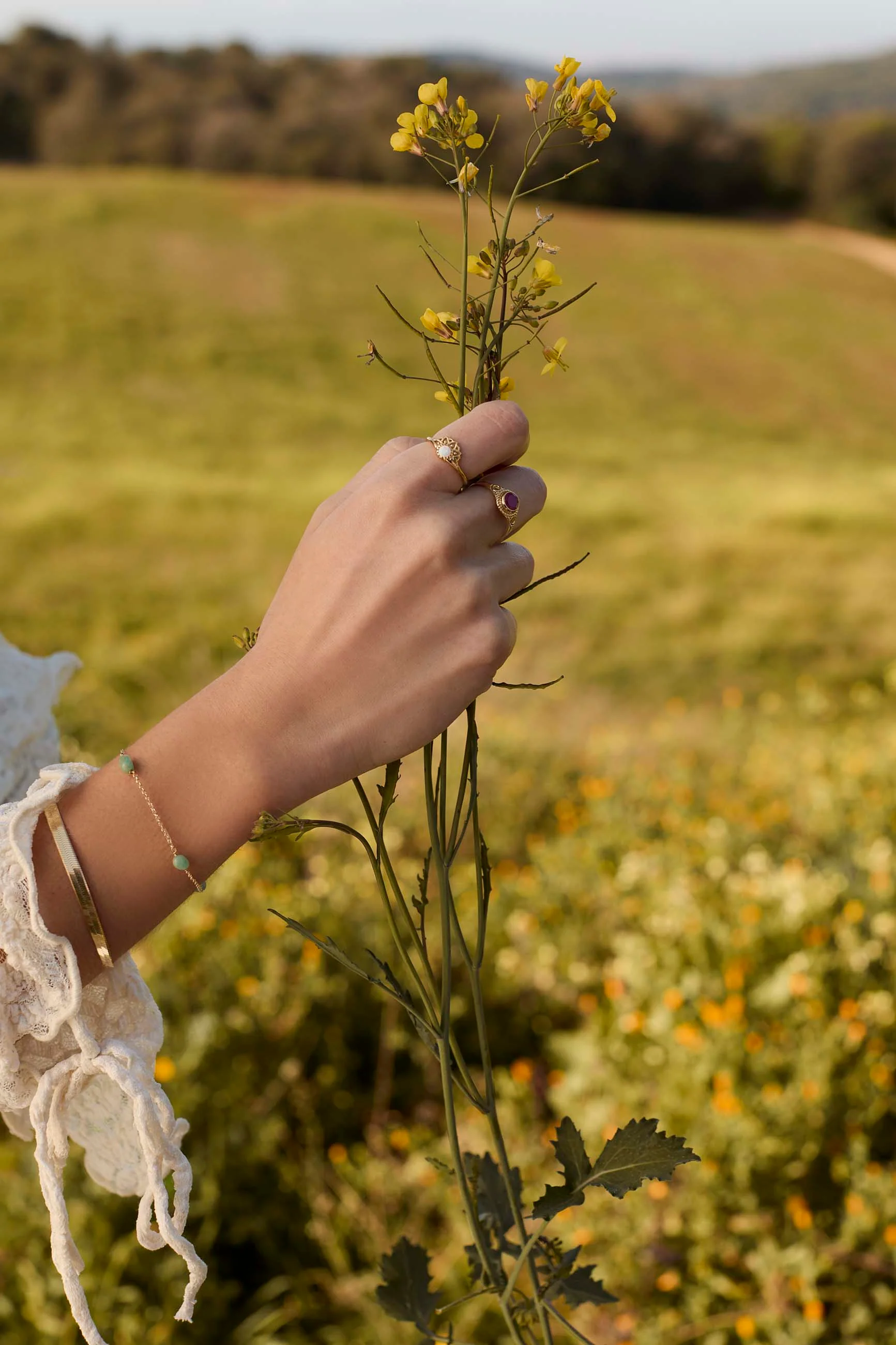 AMIT BAÑADO EN ORO esta hecho a mano con mucho amor. Su diseño destaca por tener un bonito y brillante Rubí en forma circular enmarcado por un fino entrelazado.