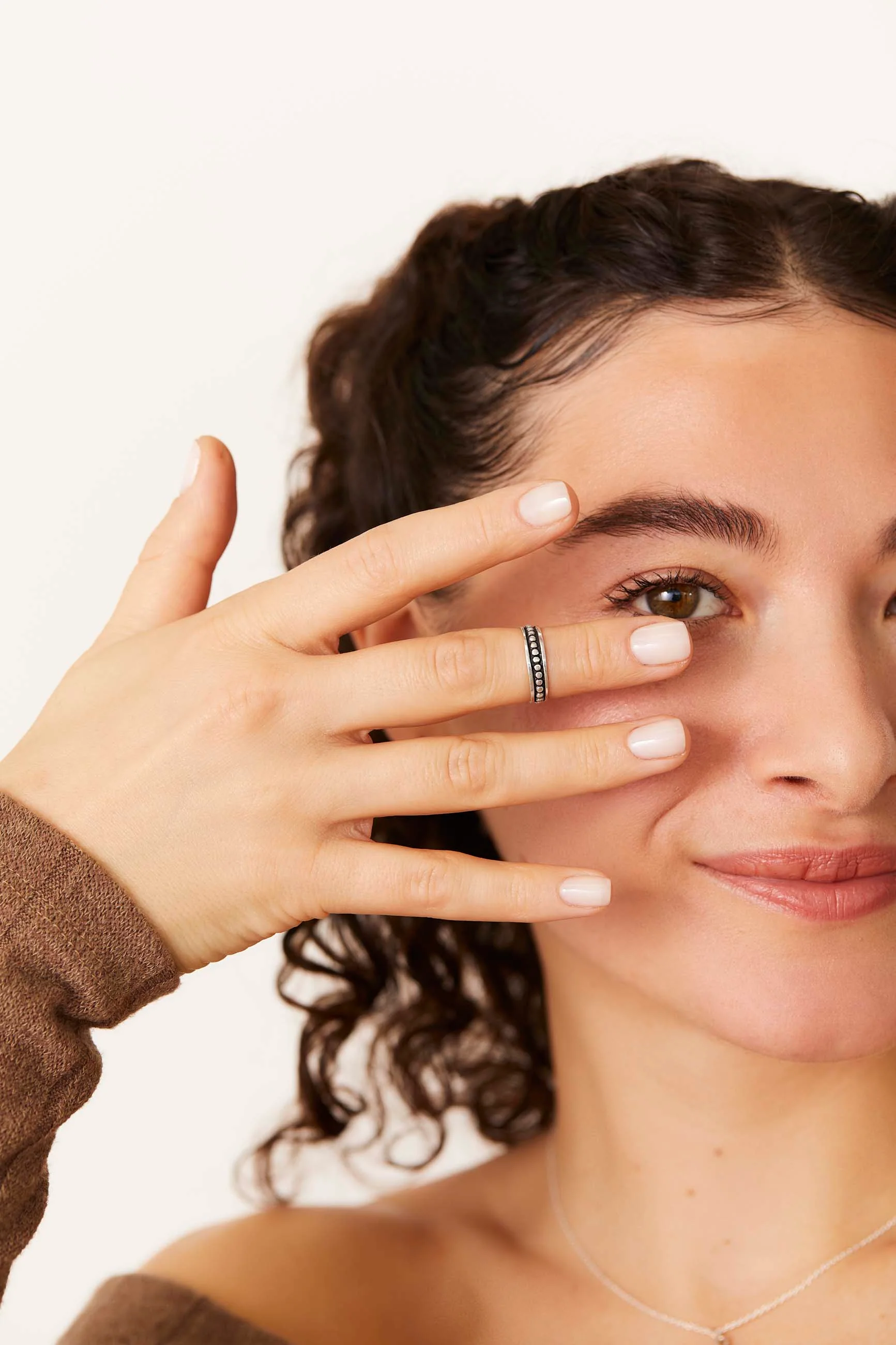 El ANK tiene un diseño con puntitos en la parte central del anillo y unos bordes lisos finitos a los extremos. Alrededor de los puntitos tenemos unas sombras más oscuras que crean contraste y sensación de profundidad.