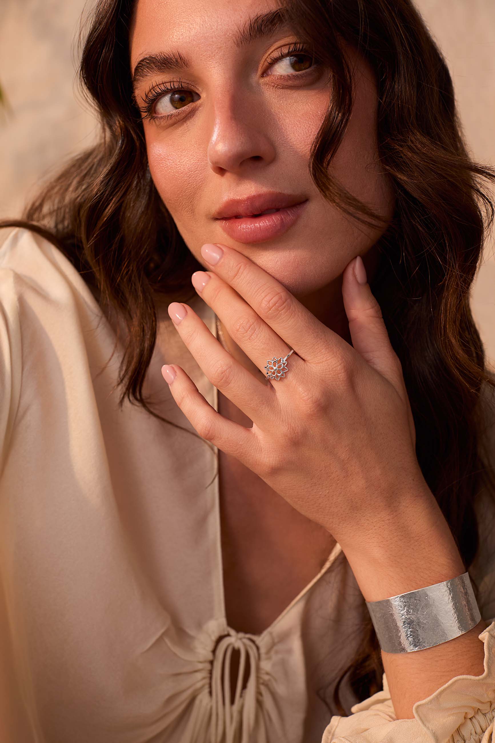 Anillo con Flor de Plata Ankur