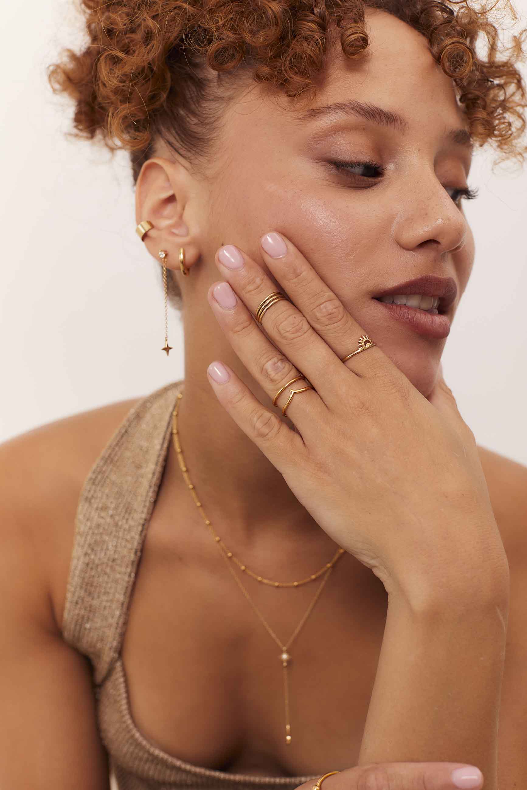 El BRAHMA BAÑADO EN ORO es un anillo adaptable, se ajusta perfectamente a la medida de todos los deditos. Además, su estilo es elemental y combina superbién con otras piezas. Una vez lo luzcas ya no querrás quitártelo.