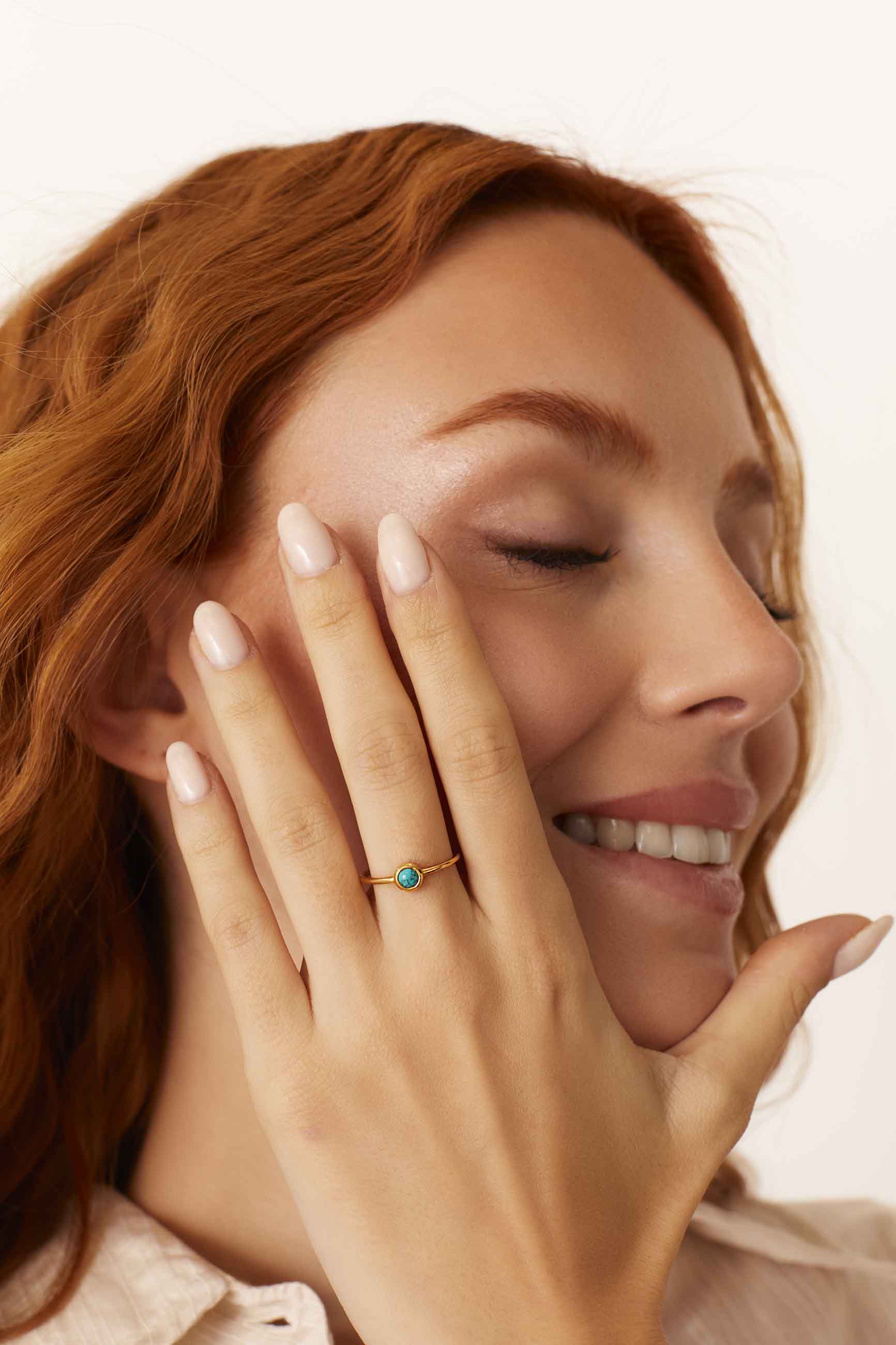 El diseño del MALINI BAÑADO EN ORO consta de la tira de oro finita y la piedra turquesa en el centro recubierta por una capita trasera y lateral finita de oro que recubre y protege la piedra.