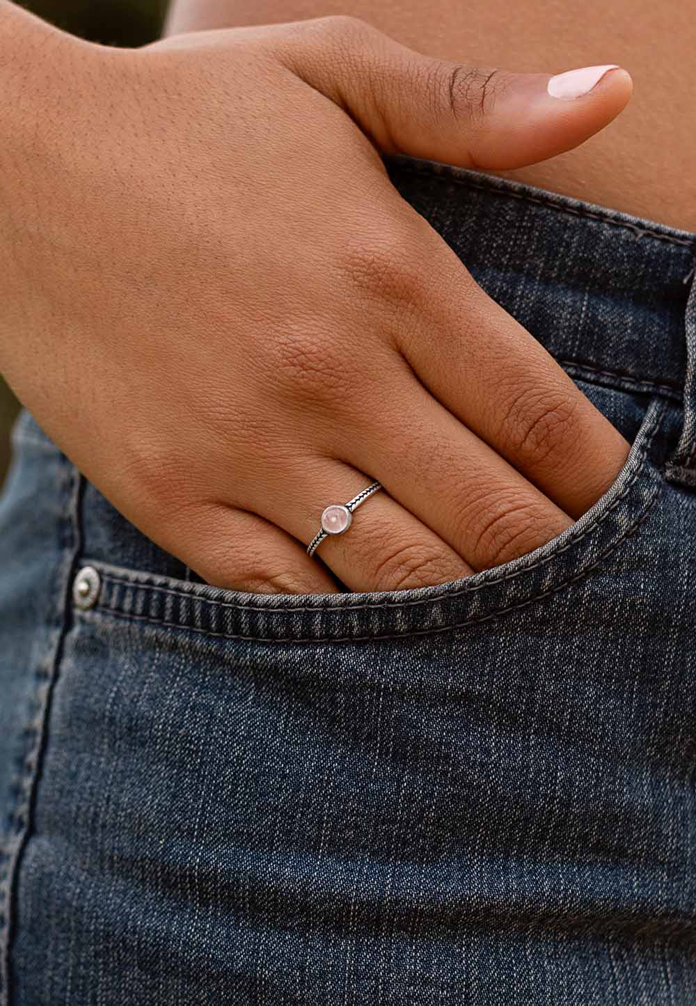 Anillo fino con Cuarzo Rosa y Plata Sunita