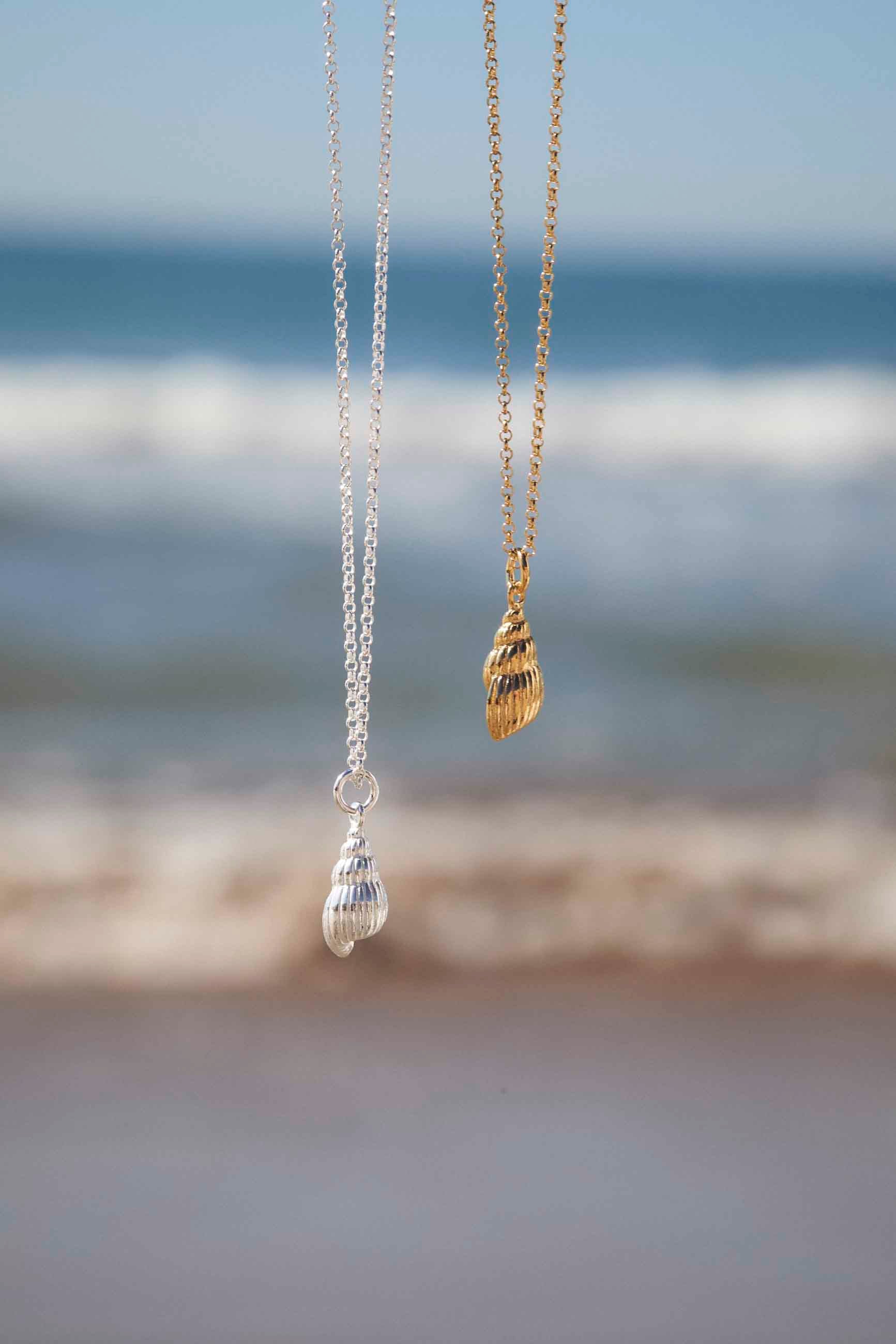 El TANAIA es un collar de Plata de Ley 925 con una cadenita fina de eslabones y un colgante de concha con detalles muy cuidados. ¡Nos encanta!