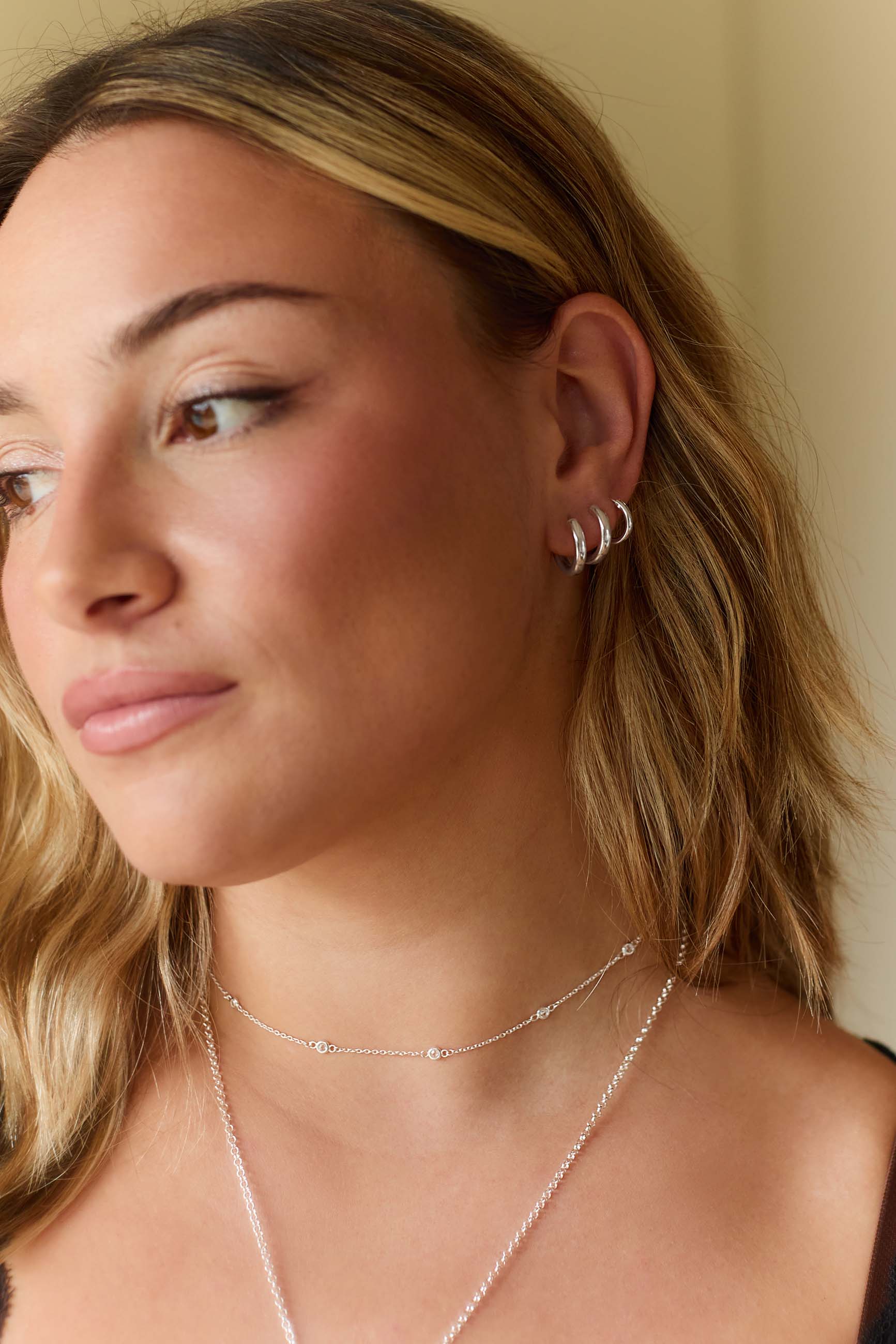El pack CHAUDA es perfecto si te gusta jugar con volúmenes y mantener un estilo limpio y elegante. Incluye tres pendientes de aro liso en diferentes tamaños, elaborados en Plata de Ley 925: el aro más pequeño de 12 mm ACHALA, grueso pero muy ligero; y dos aros de 16 mm ACHALA, del mismo estilo que el anterior con algo más de diámetro.