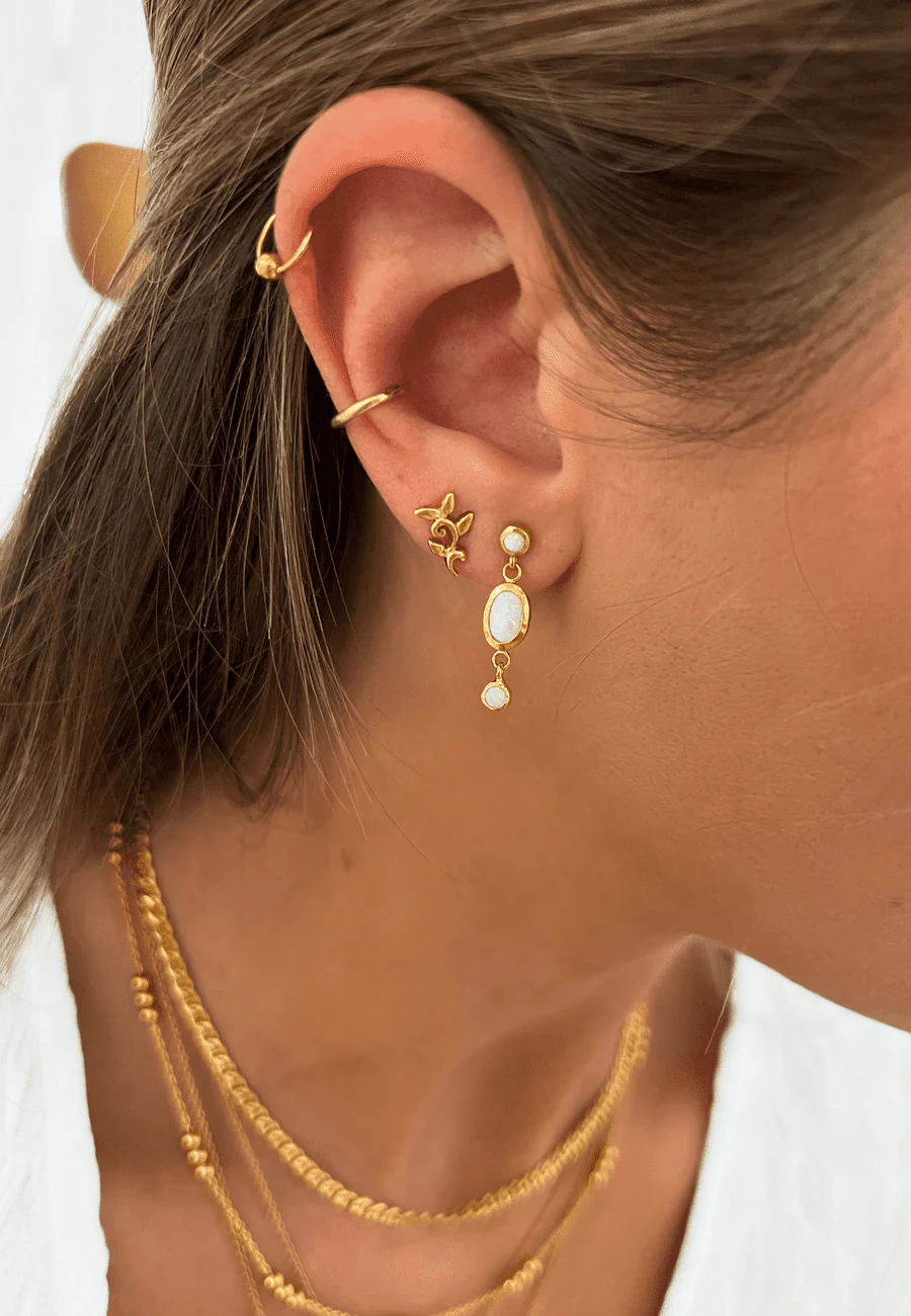 Pendientes Indu bañados en Oro con piedra de Ópalo