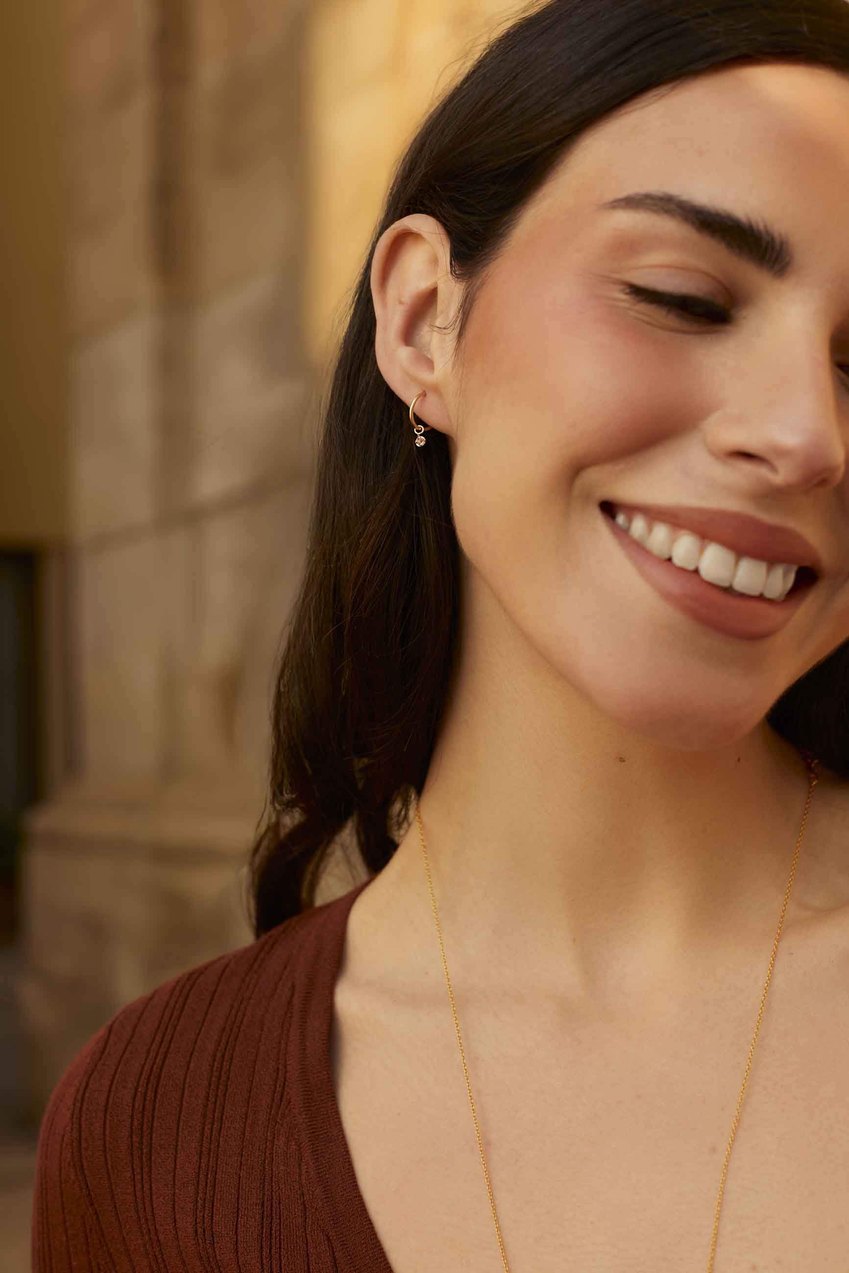 Los KASHVI BAÑADOS EN ORO están formados por un pequeño aro del que cuelga una preciosa circonita redonda. Son muy fáciles de combinar e ideales para darle un toque de luz a tus looks. Su tamaño es perfecto para llevarlo como primer pendiente o incluso para llevarlo como piercing en el segundo o tercer agujerito. ¡Te van a encantar!