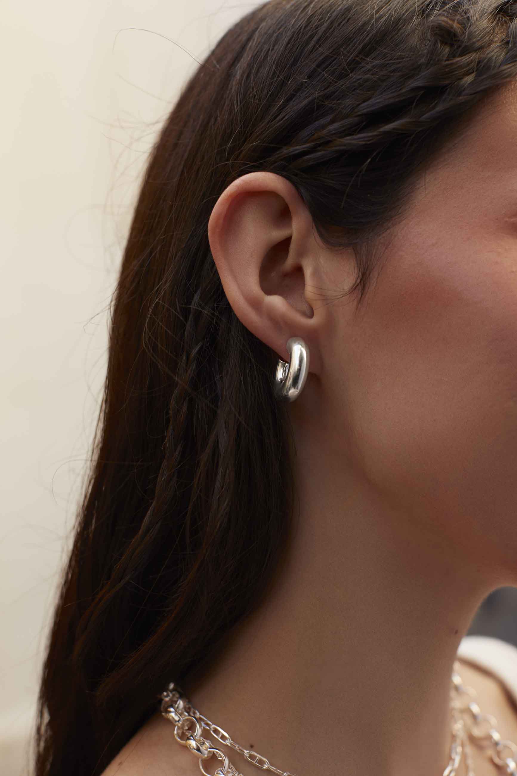 Los pendientes Pranay de plata de ley 925 presentan un diseño sencillo, pero con grosor moderado y un tamaño discreto, por lo que te permitirá una fácil combinación con otros accesorios.