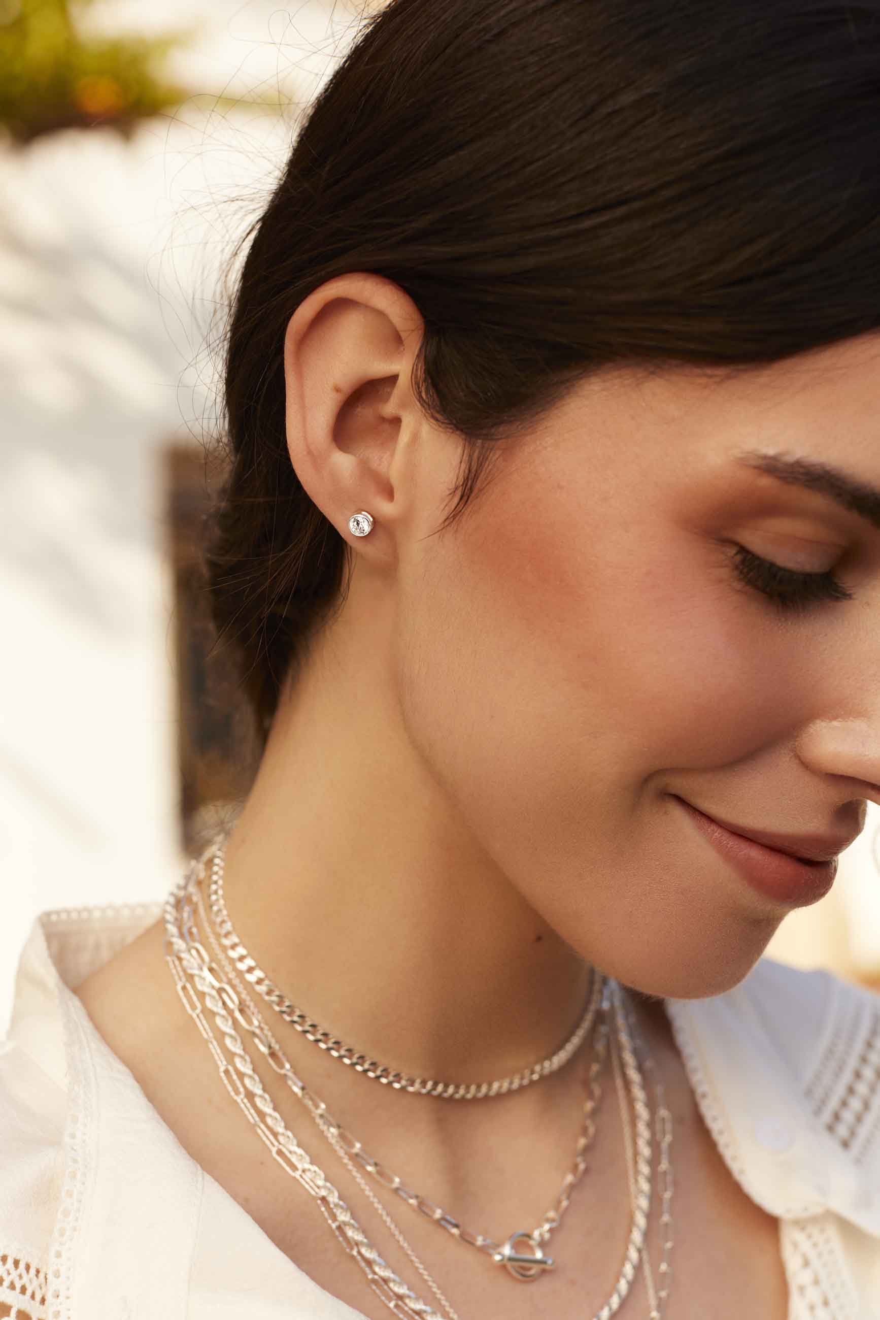Nos encanta como queda la circonita en el pendiente USHA, son pendientes superespeciales y exclusivos. Su diseño está muy cuidado y el collar JAYA hará un conjunto espectacular, ambos con circonita como protagonista.